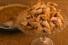 Puff pastries filled with a homemade berry compote topped with royal icing.